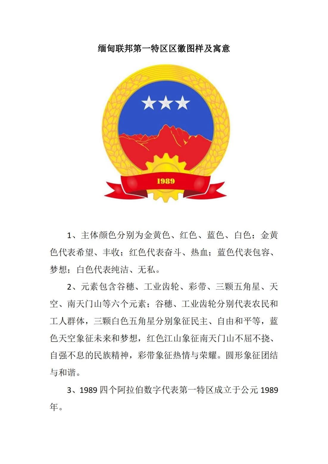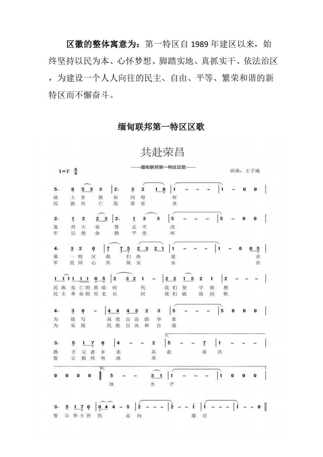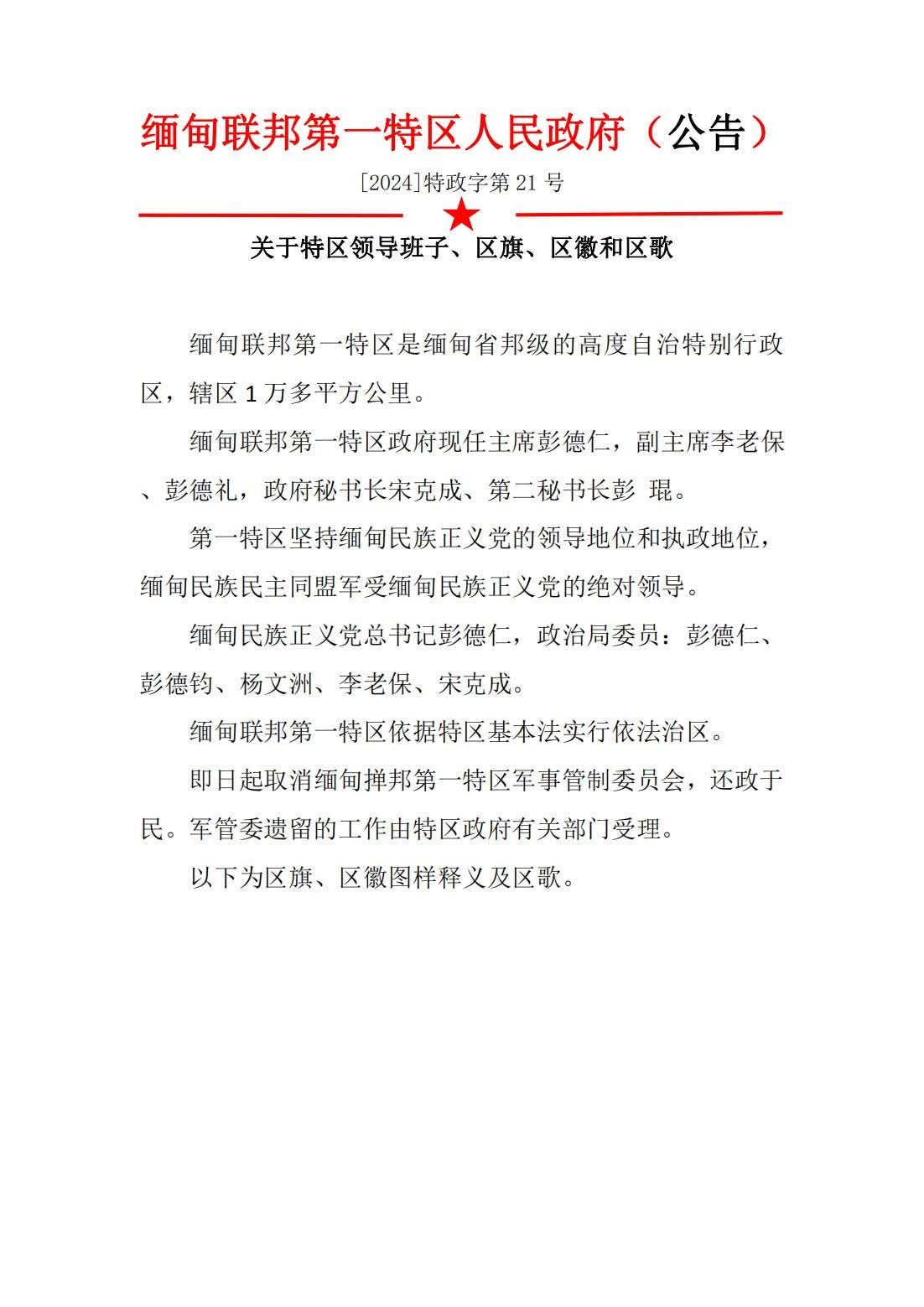关于特区领导班子、区旗、区徽和区歌的公告